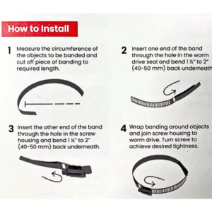 Unlock the efficiency of your projects with the BNC03220 Band-N-Clamp™ Kit, designed for simplicity and robustness. This kit includes a 100-foot coil of 3/8” (9.5 mm) stainless steel banding accompanied by twenty sets of WDS220 worm drive seals, featuring a rack and screw housing for straightforward assembly.